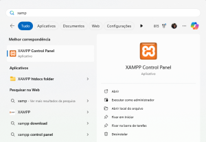 Após instalação localize no iniciar do windows o atalho para abrir o programa xamp.
