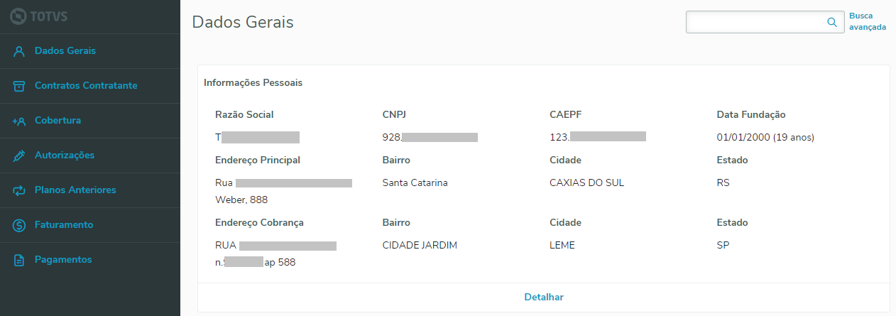 Ao clicar no detalhar do card de contratante/prestador você será redirecionado para o detalhe do mesmo na sua respectiva manutenção.