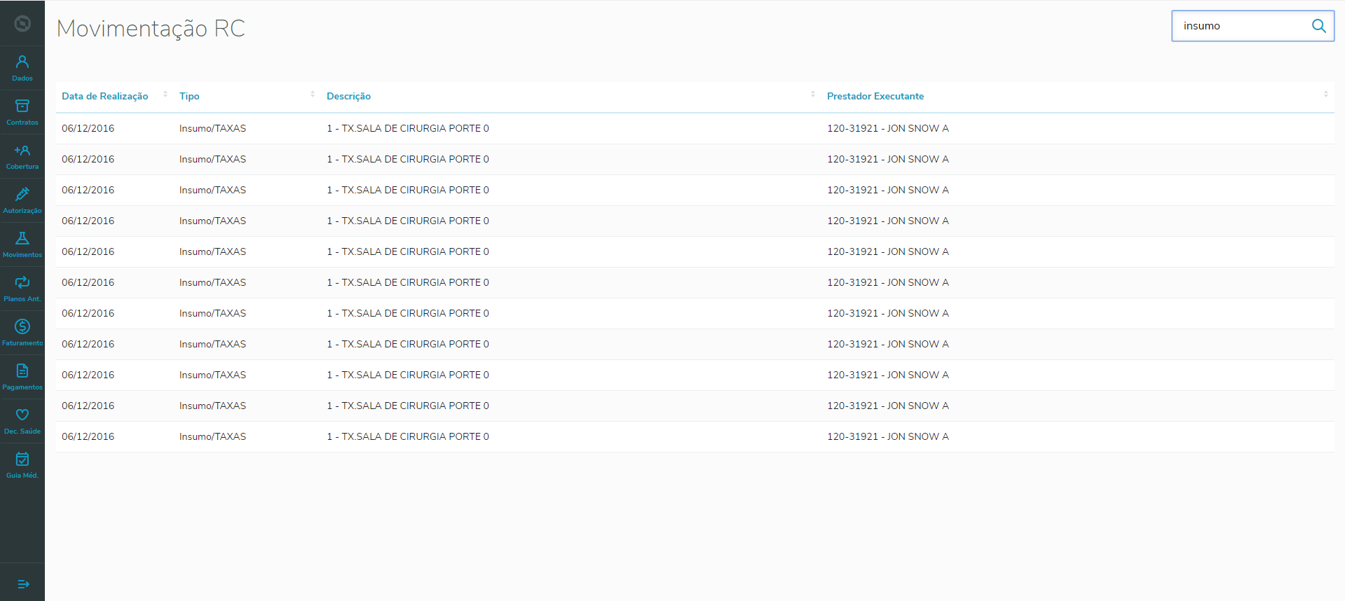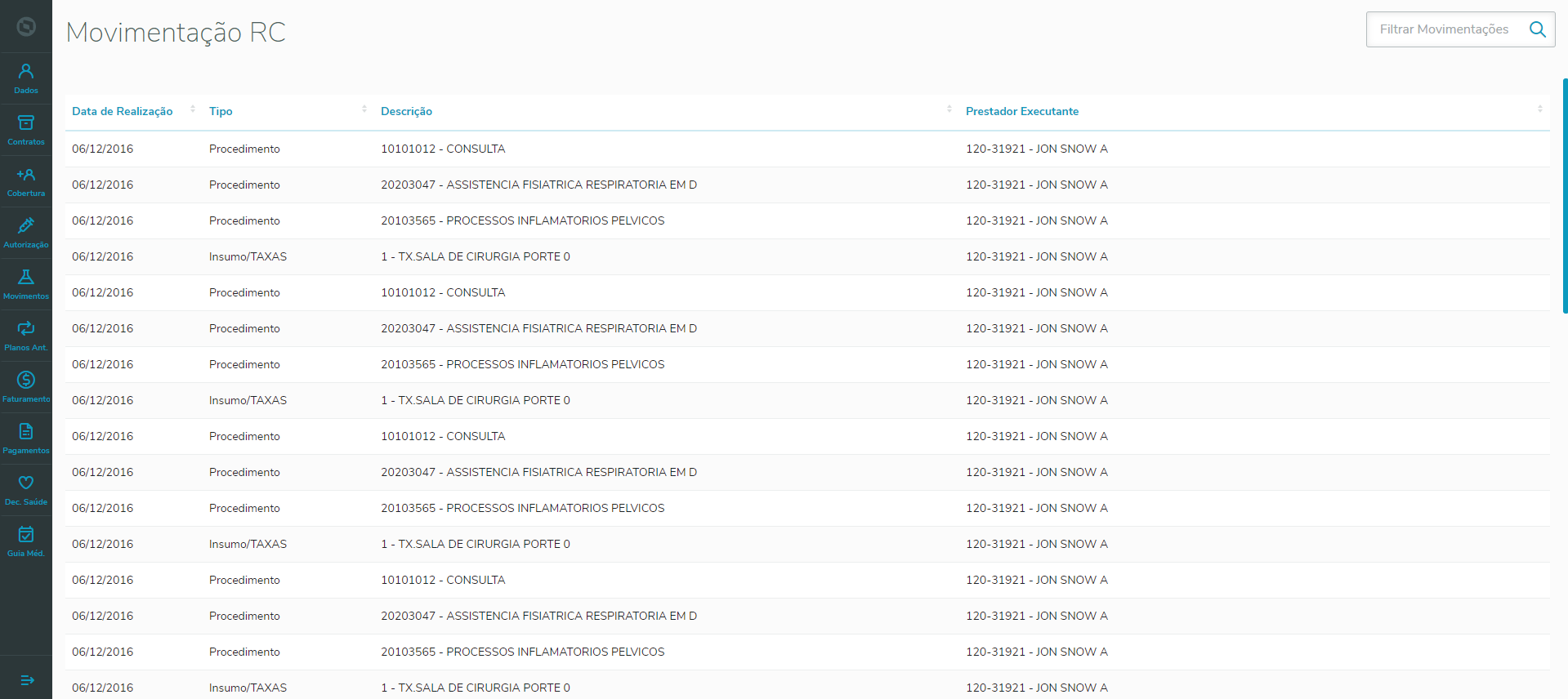 Este programa permite visualizar os Movimentos (RC) os quais os beneficiários ativos da pessoa efetuaram.