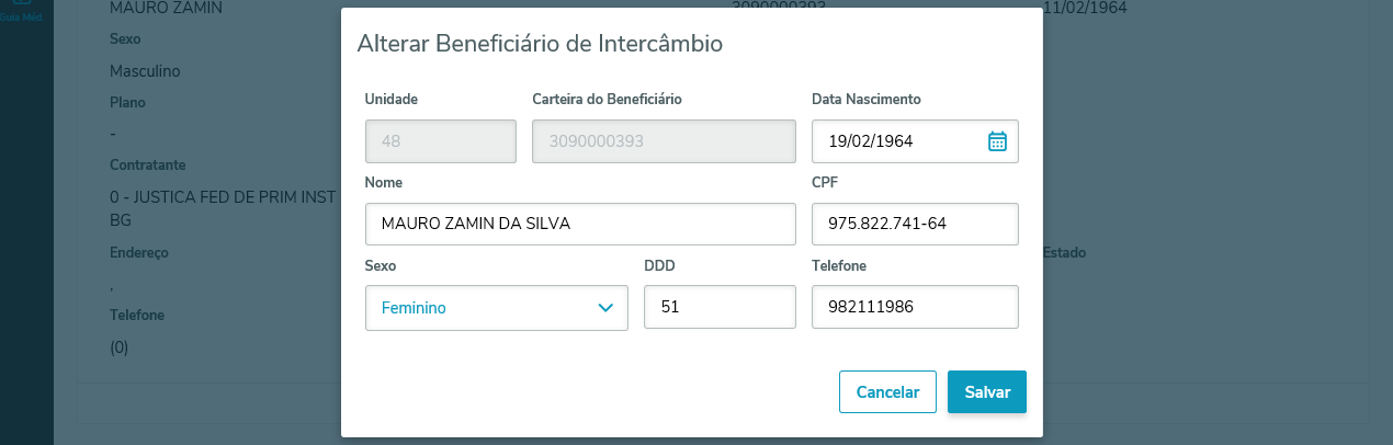 Caso o usuário logado possua permissão para a tela de beneficiário (hvp.beneficiaryRegister) será possível enviar para o serviço de Pré-Cadastro de Beneficiários da Unimed Brasil (CADBENEF).