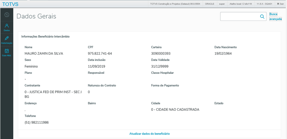 Ao clicar no nome do beneficiário você será redirecionado para o detalhe do mesmo, na manutenção de beneficiários (hvp.beneficiary)
