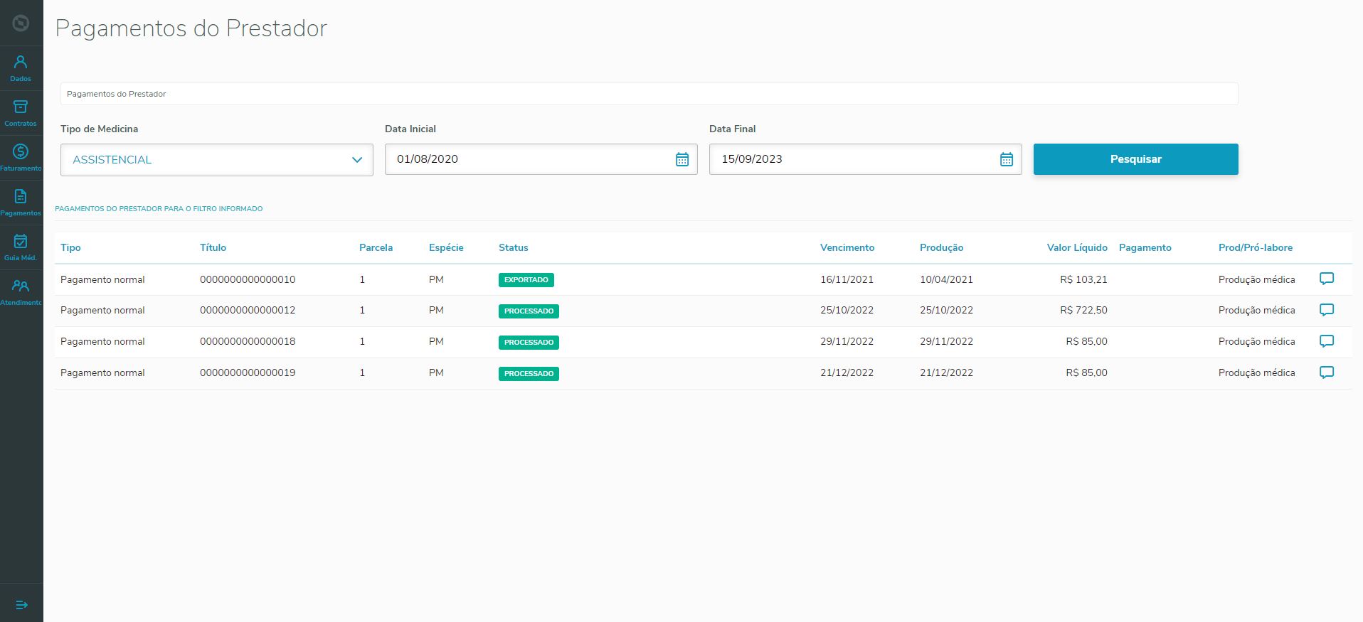 Pagamentos do Prestador