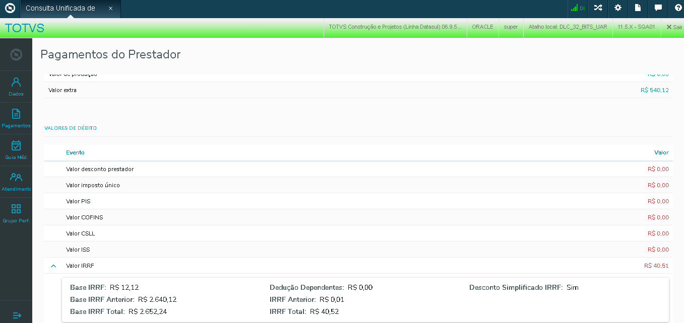A tela de detalhes do pagamento do prestador permite visualizar as informações Objetivo da tela: