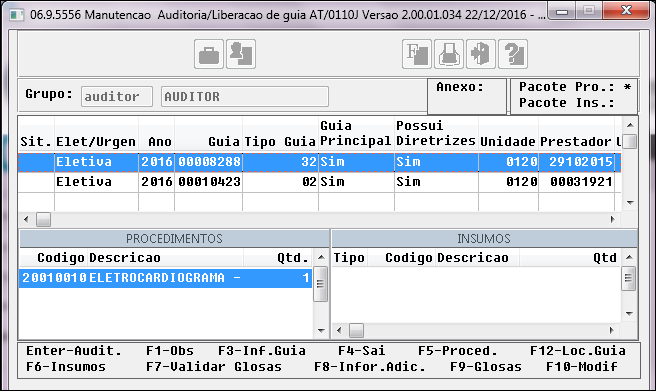 Autorização Guias pelo Auditor/ResponsávelAT0110J