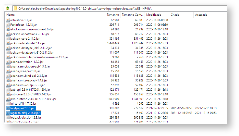 Para clientes que fazem a gestão de planos de saúde primeiramente você deve realizar o download da versão 2.16.0 do log4j neste link conforme seu sistema operacional e descompactar o arquivo para ter acesso aos jars.
