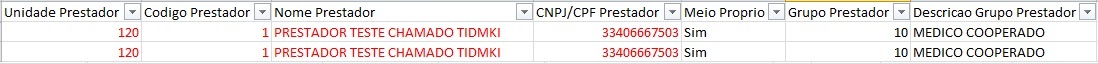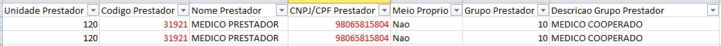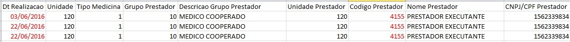 Nas primeiras colunas temos a "Data de Realização" desse movimento, e os dados do prestador.
