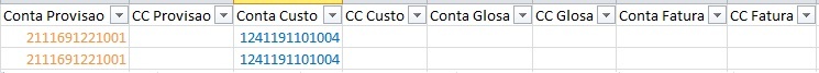 Nas próximas colunas temos as contas de provisão e de custo desses movimentos: