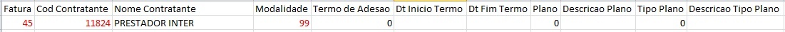 Nas próximas colunas temos os dados referente ao "Plano".  Podemos verificar que esse documento não possui fatura.