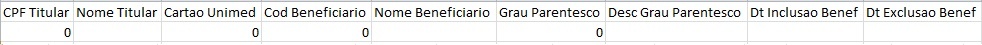 Nas próximos colunas temos os dados do "Beneficiário", como essa fatura não tem beneficiário estarão em branco: