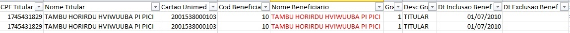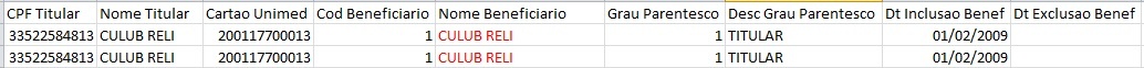 Nas próximas colunas temos os dados do "Beneficiário". Podemos verificar que os dois movimentos foram incluídos para o mesmo beneficiário.