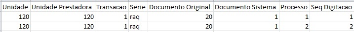 Movimento do Procedimento encontrado. Unidade: 9999. Unidade Prest: 9999. Transação: . Serie: N. Doc Orig: 99. Doc Sist: 9.