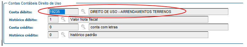 • Neste campo normalmente será informada a conta de direito de uso (Ativo).