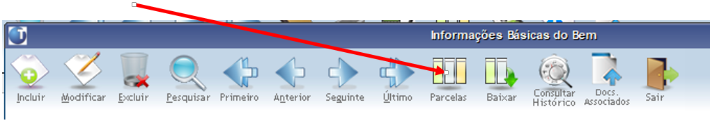 Ao clicar em "Parcelas" no PAT10028, é aberta tela para fazer manutenção nas parcelas do bem.