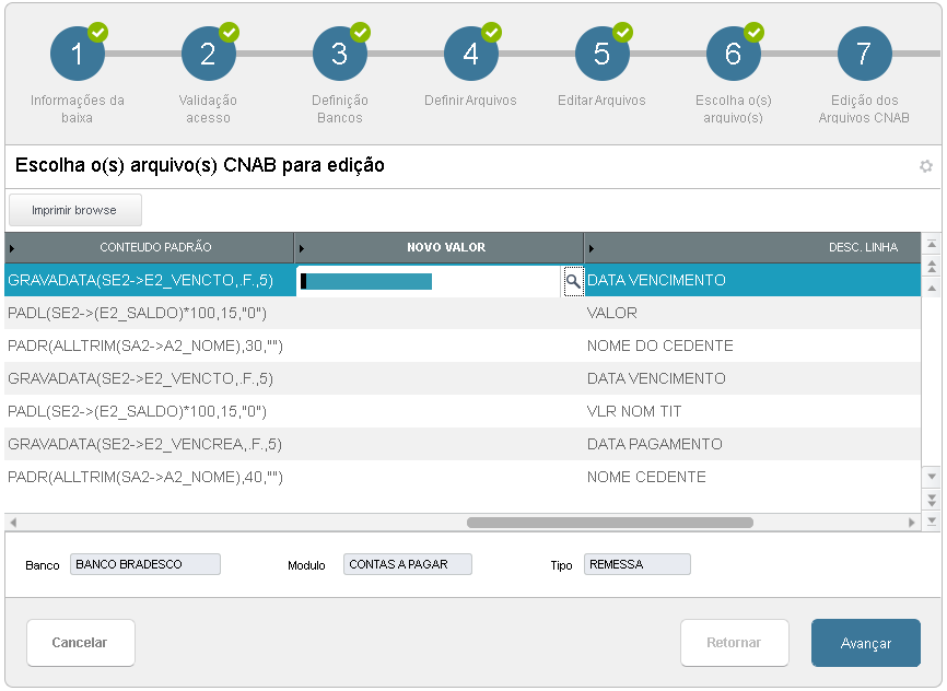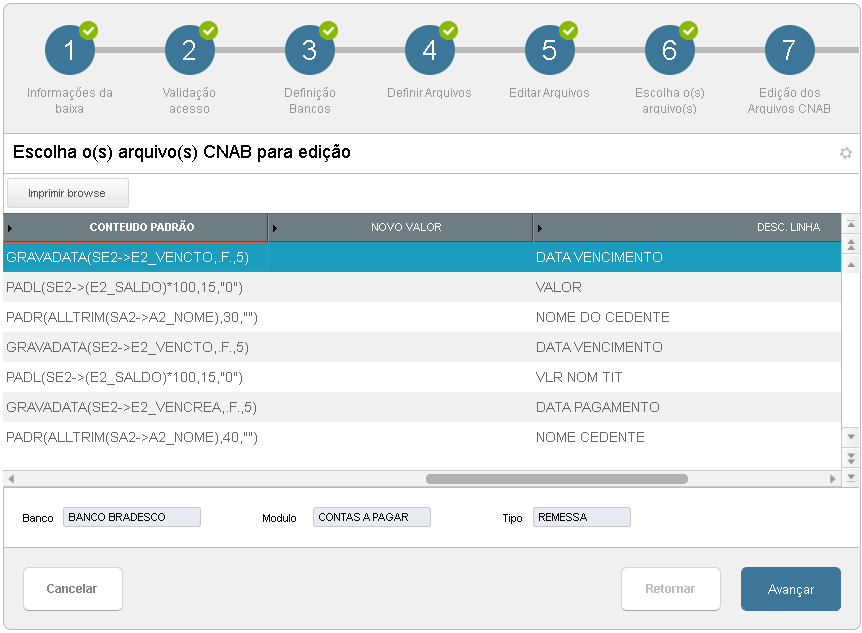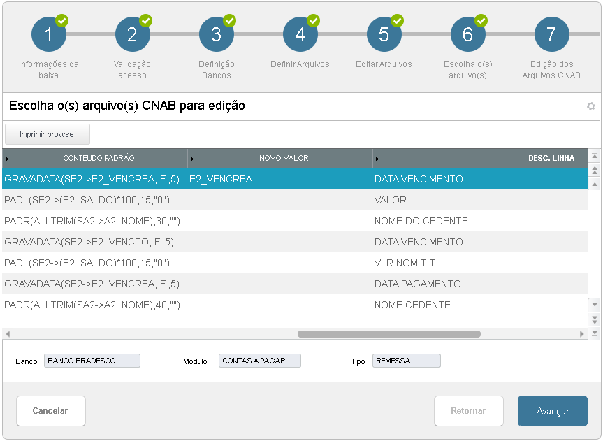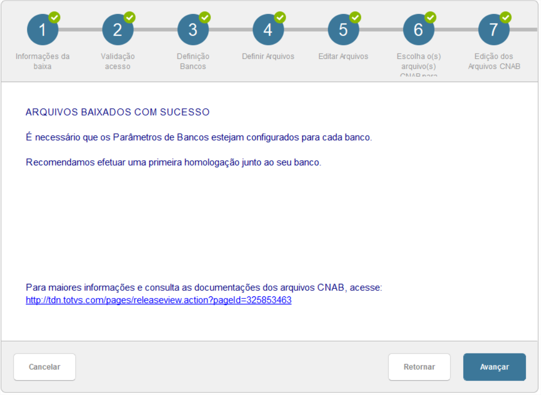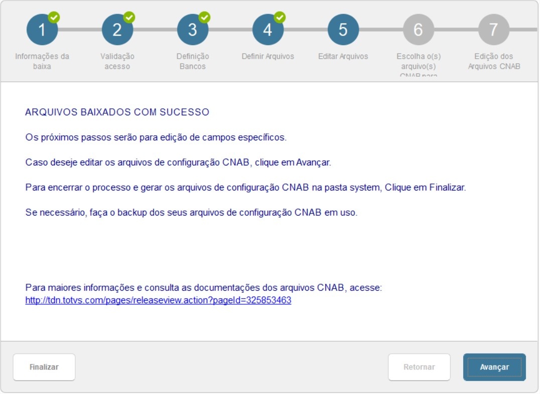 6. Download de los archivos de configuración CNAB, que se grabarán en las tablas FOP, FOQ y FOZ.