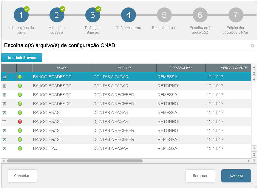 • El cliente podrá seleccionar qué bancos desea buscar por actualizaciones de configuración CNAB disponibles.