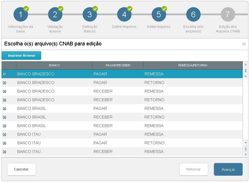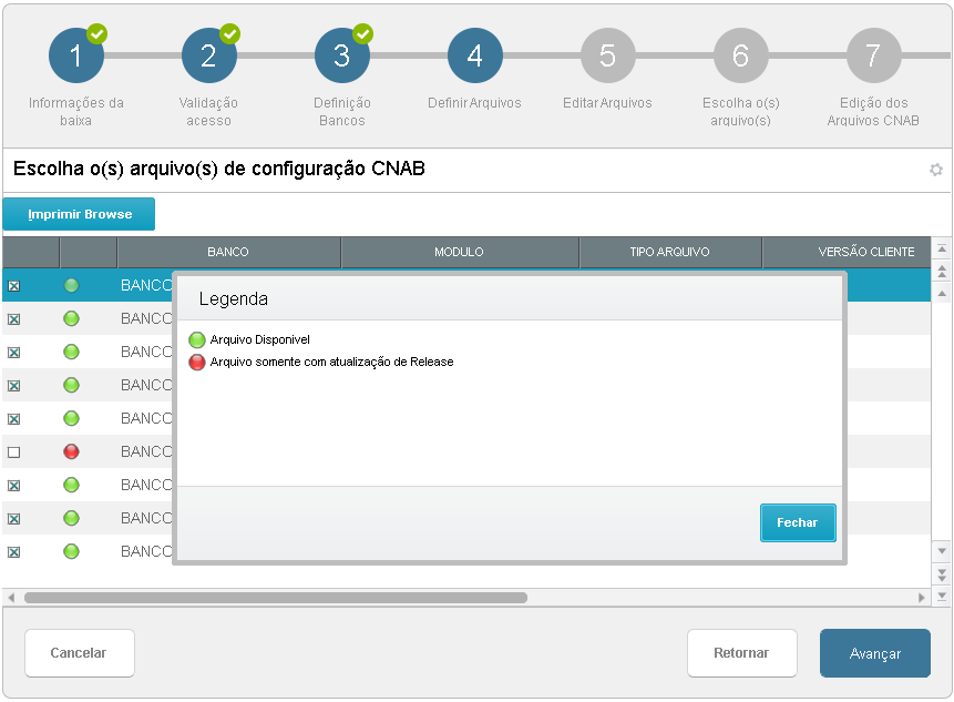 Rutina responsable por el Wizard de paso a paso para la baja de los archivos de configuración CNAB.