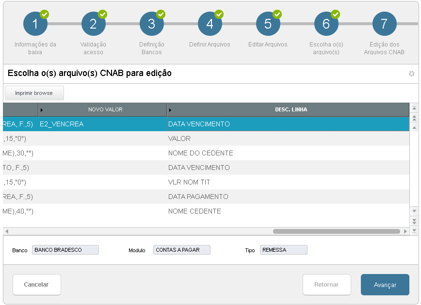 • Si optara por la edición de los archivos de configuración CNAB, haga clic en la opción Avanzar.