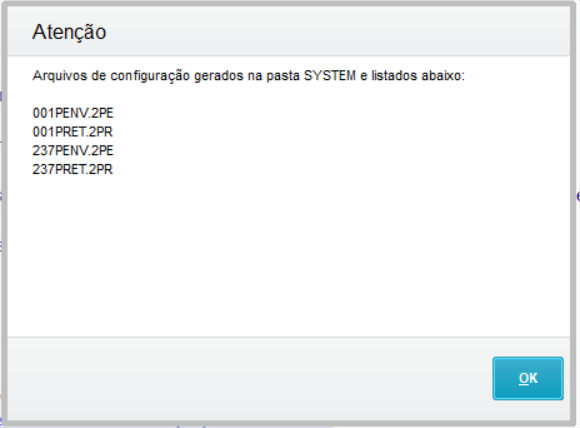 • Si optara por la finalización del proceso, el asistente generará los archivos de configuración CNAB en la carpeta system. Para esta acción, haga clic en la opción Finalizar.