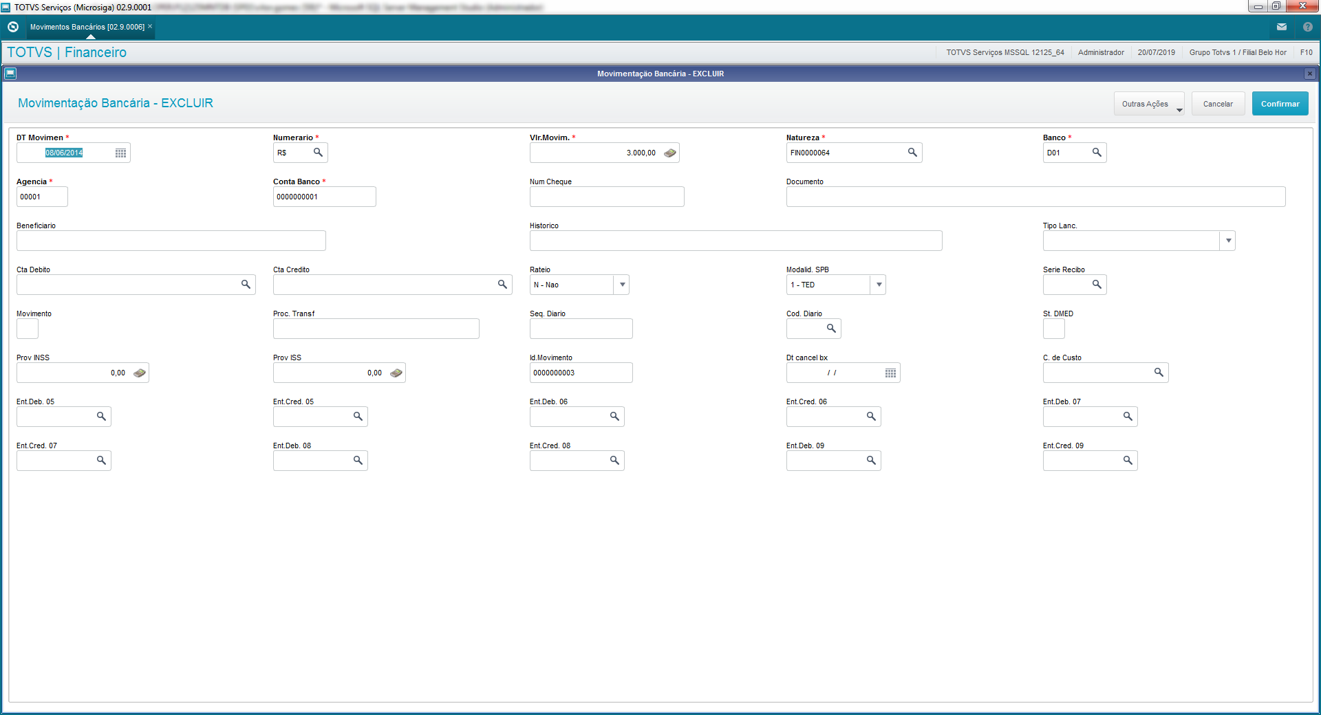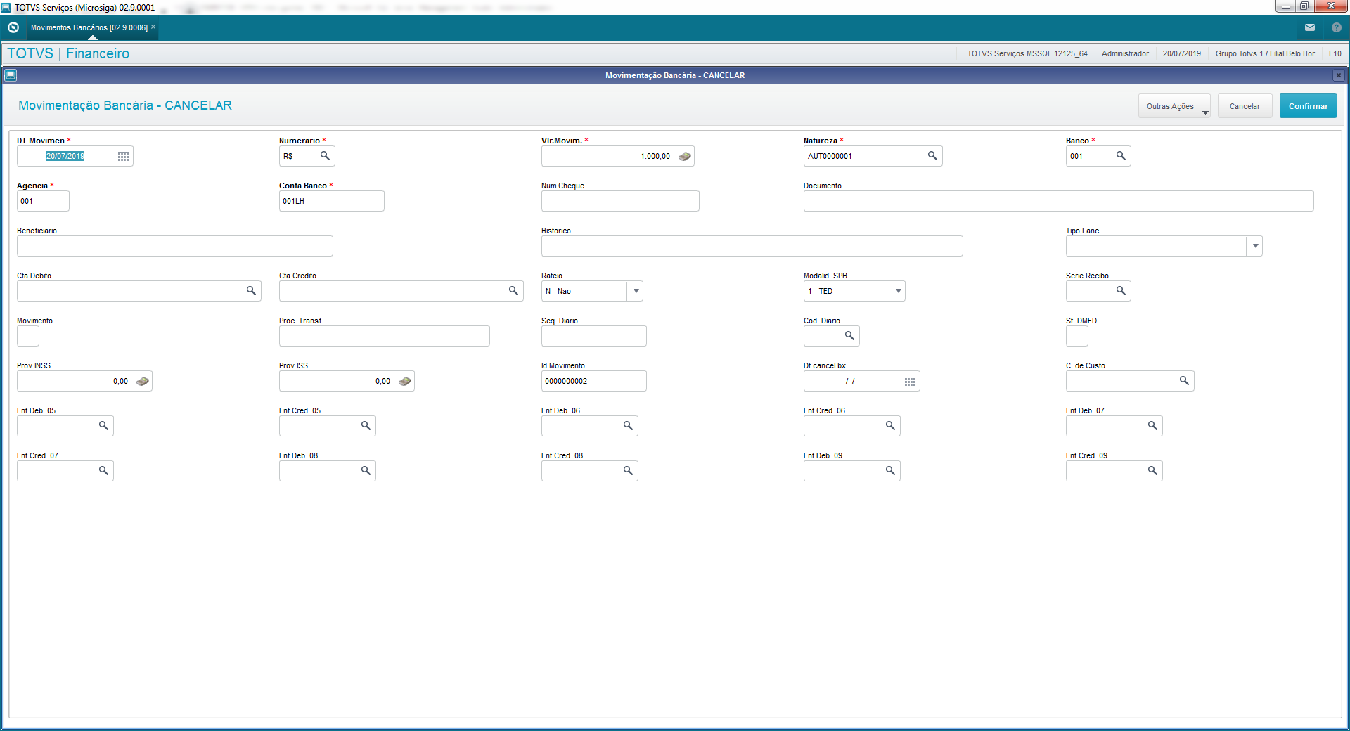 El Protheus controla las entradas y salidas de las cuentas bancarias por medio de sus rutinas y procesos. De esta forma, permite incluir movimientos y también transferir valores entre los bancos.