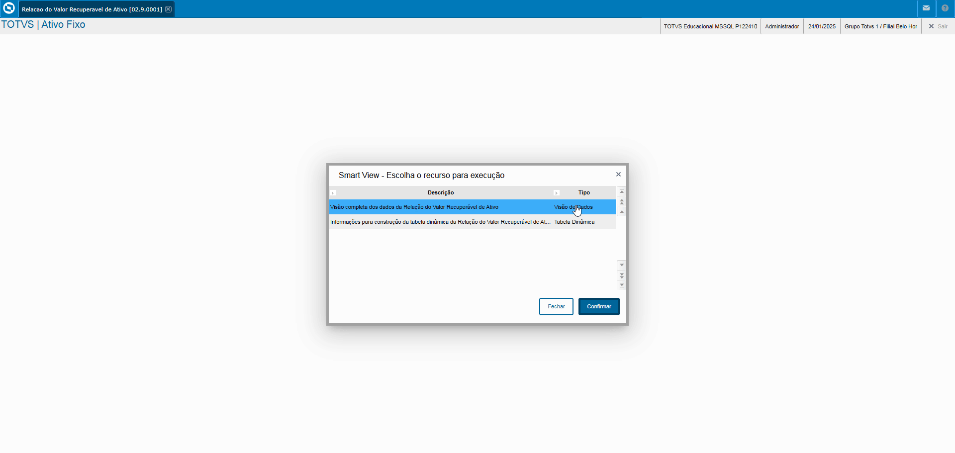 The Asset Recoverable Value List business object can be executed via the Protheus menu using the program ATFSV028.