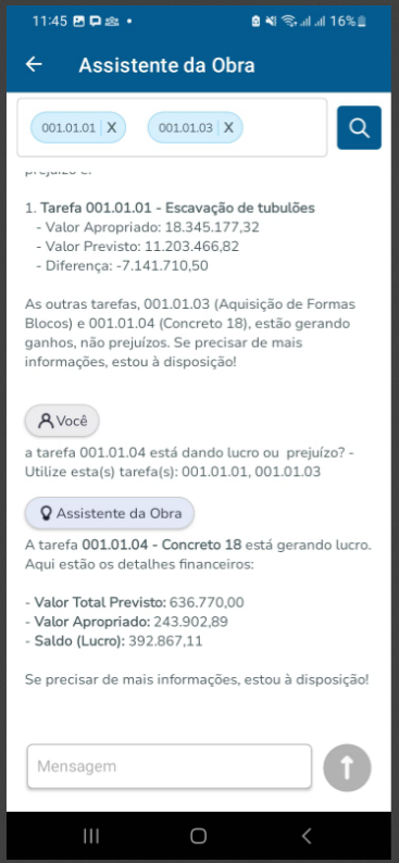 O "Assistente da Obra" é um recurso especializado projetado para fornecer suporte em tempo real e solucionar dúvidas relacionadas à construção civil e gerenciamento de projetos.