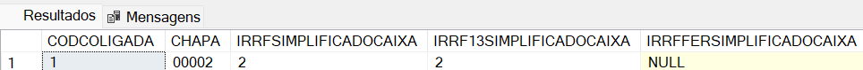 Processo utilizado para atualização dos campos IRRFSIMPLIFICADOCAIXA, IRRF13SIMPLIFICADOCAIXA e IRRFFERSIMPLIFICADOCAIXA.