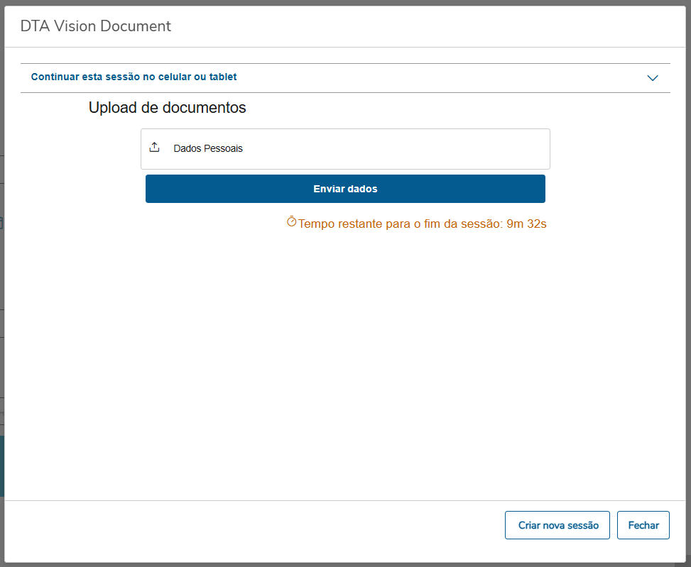 O DTA suporta o carregamento dos seguintes formatos de arquivo: PDF, PNG, JPEG, JPG e WEBP.
