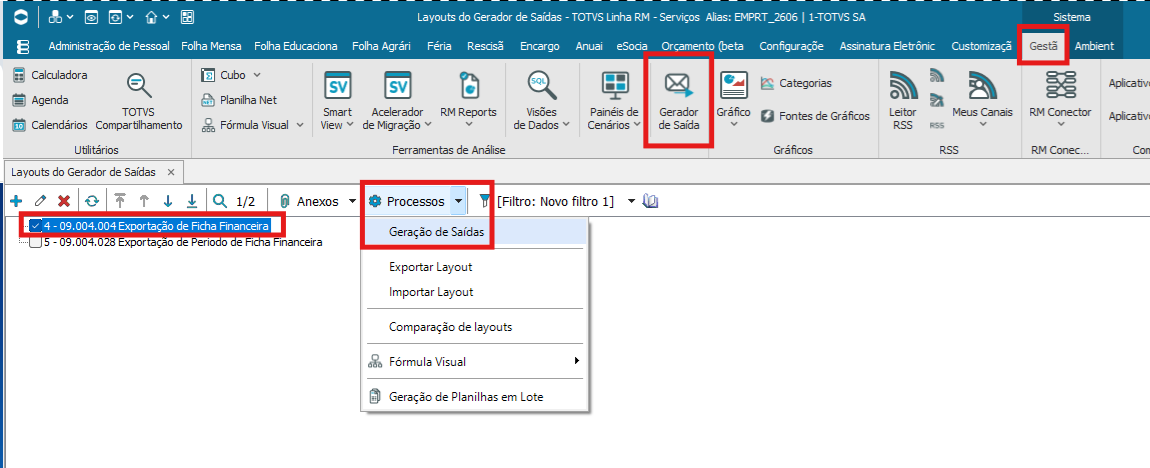 A ficha financeira exportada será posteriormente importada na base de produção, conforme orientações abaixo.