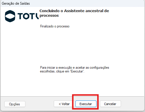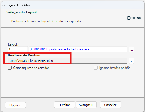 Anotar o diretório de destino, pois é onde o arquivo será gerado para posterior importação.