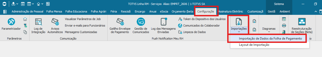 Acessar o menu: Configurações | Importações | Importação de Dados da Folha de Pagamento
