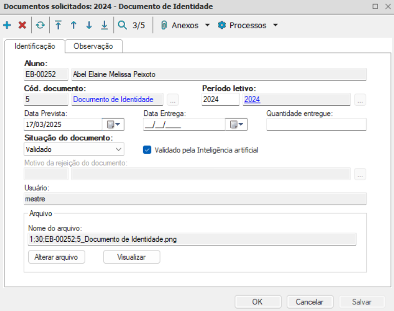 - Validado: indica que de fato o aluno entregou o documento.