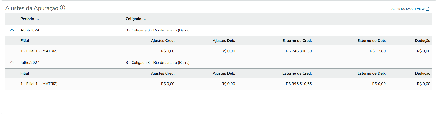 A origem dos dados é o Período de Apuração. Se o mesmo estiver com Status aberto, o sistema faz uma simulação do encerramento e apresenta os valores parciais, considerando os lançamentos fiscais escriturados até a data do processamento.
