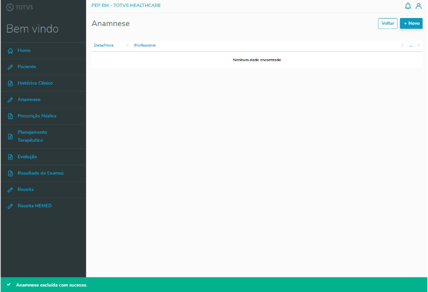 - O usuário que realiza a exclusão deve ser o mesmo que criou a Anamnese.