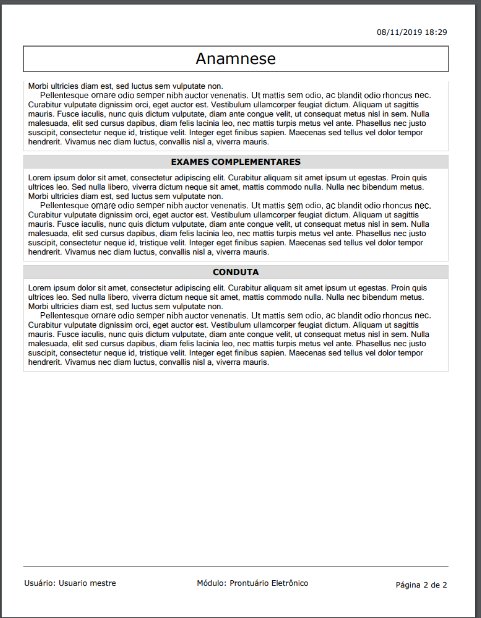 - Finalizar e imprimir: Finaliza e imprime a anamnese do paciente, após finalização não é mais possível realizar edições. Só é possível finalizar a anamnese após o preenchimento dos campos obrigatórios.