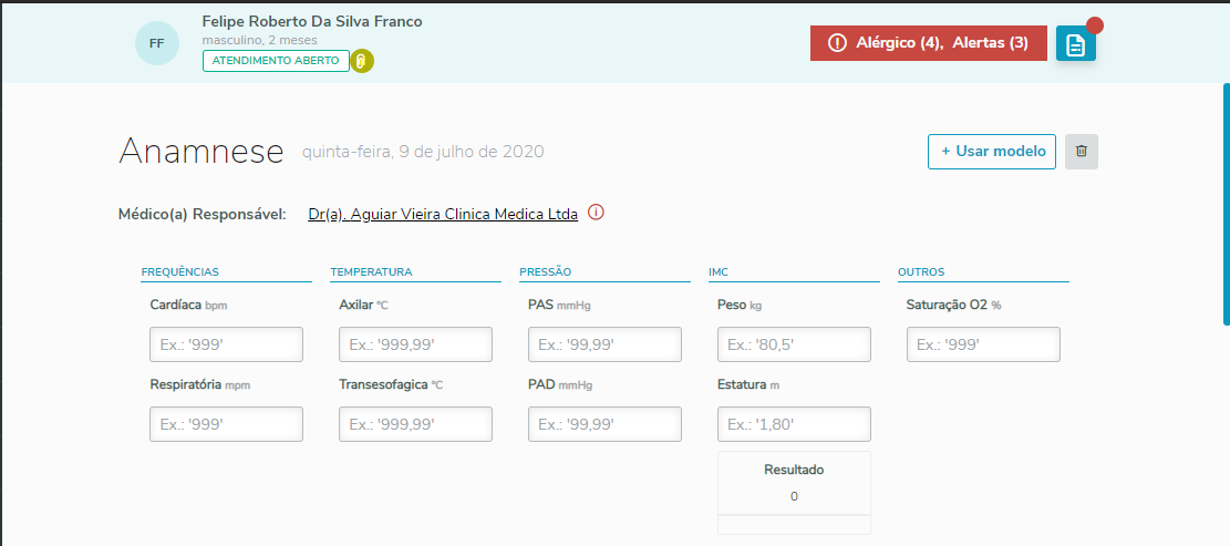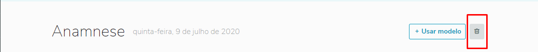 Usar modelo: Carrega um modelo de anamnese previamente salvo, preenchendo automaticamente os campos com informações padrão.