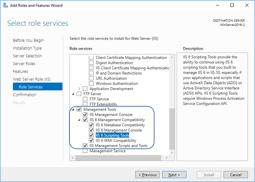 Deve ser ativado a “Compatibilidade com Gerenciamento do IIS 6” conforme exemplo acima.