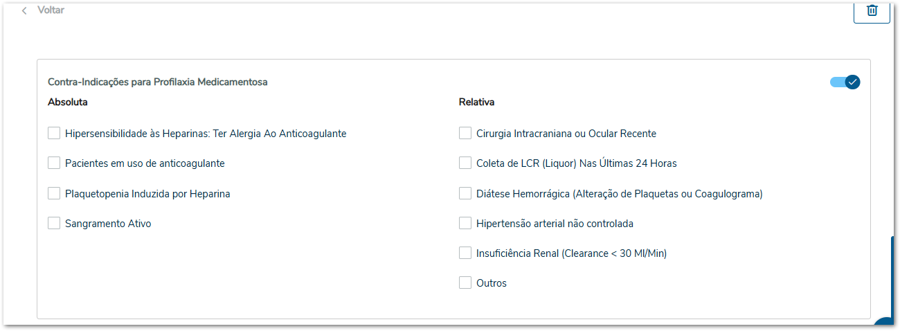 Em seguida, são escolhidos os fatores de risco que se aplicam ao paciente. Esses fatores já são previamente configurados no sistema.