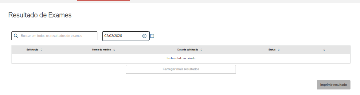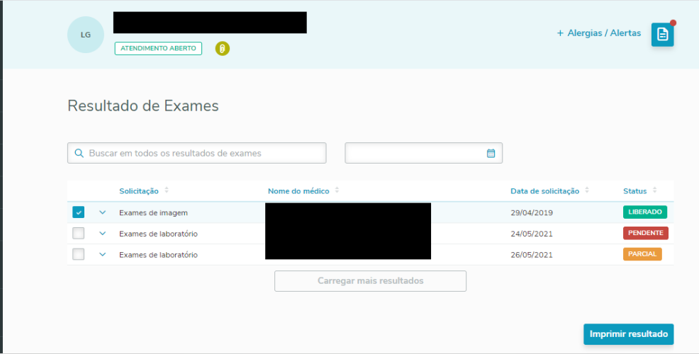 Além da tabela com os exames é possível realizar a impressão do resultado.