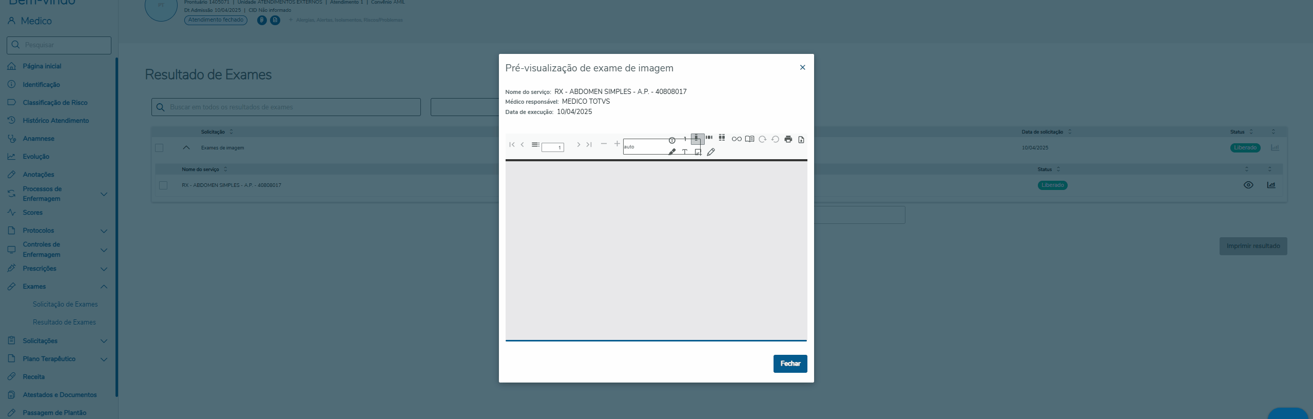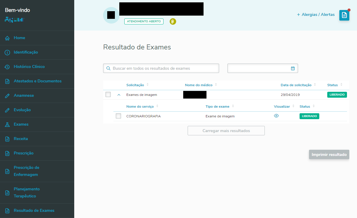 Ao clicar no ícone, deverá ser possível pré-visualizar o resultado exame, seja de imagem (será exibido as imagens do exame) ou laboratório.