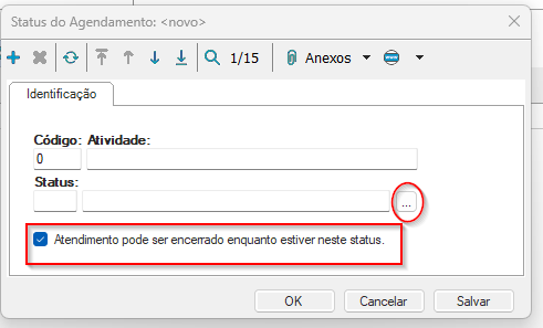 Na Inclusão de um novo Status do Agendamento, este deve estar associado a um Status que é da Base do RM Saúde.