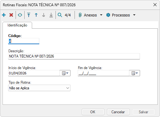 É necessário cadastrar uma Rotina Fiscal do tipo "Não se Aplica".
