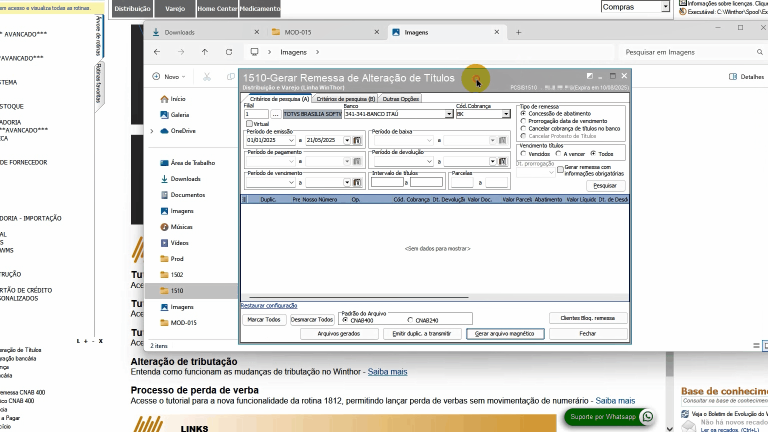| Função: | 1510 - GERAR REMESSA DE ALTERAÇÃO DE TÍTULOS |