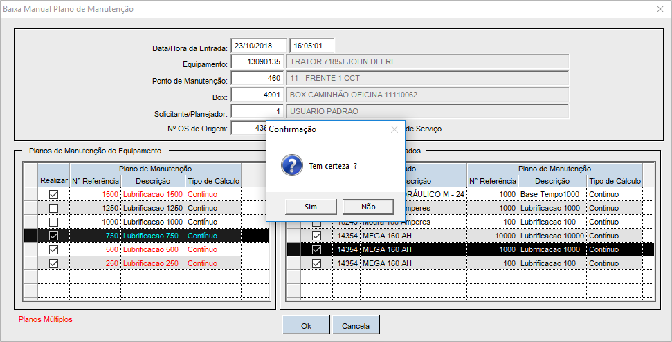 Após informar os campos solicitados, o planejador deverá clicar em "OK", neste momento o sistema irá solicitar a confirmação do processo, conforme tela abaixo: