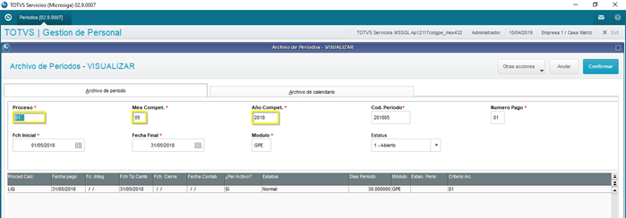 | A2 | TIPO DOCUMENTO APORTANTE | Sí | fTabela("S011",NAUX02,11) |