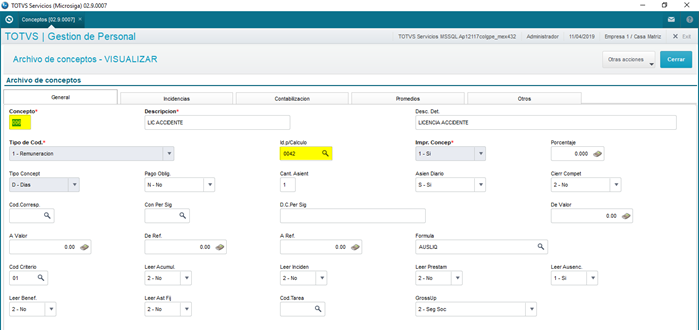 Concepto ID de cálculo 1362, 0444, 0054, 0442