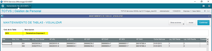 | C2 | RAZON SOCIAL | Sí | fTabela("S011",NAUX02,4) |