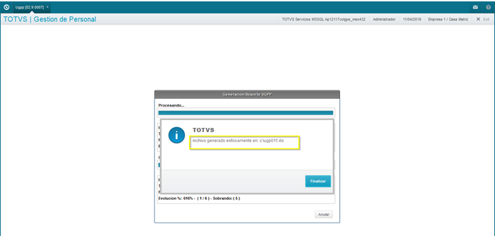 Configure parámetros para generación de informe UGPP en formato Excel.
