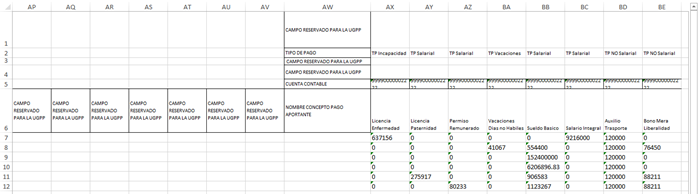 | AX3 | CAMPO RESERVADO PARA LA UGPP | No | Vacío |