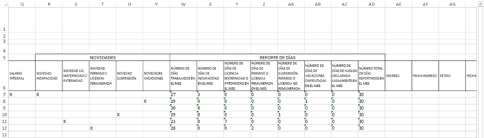 | X6 | NUMERO DIAS INCAPACIDADES EN EL MES | No | |