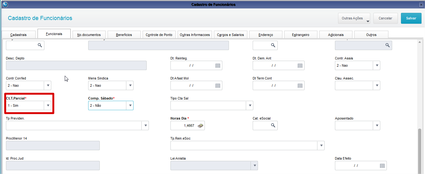 O campo "CT.T.Parcial" deverá constar com "SIM"